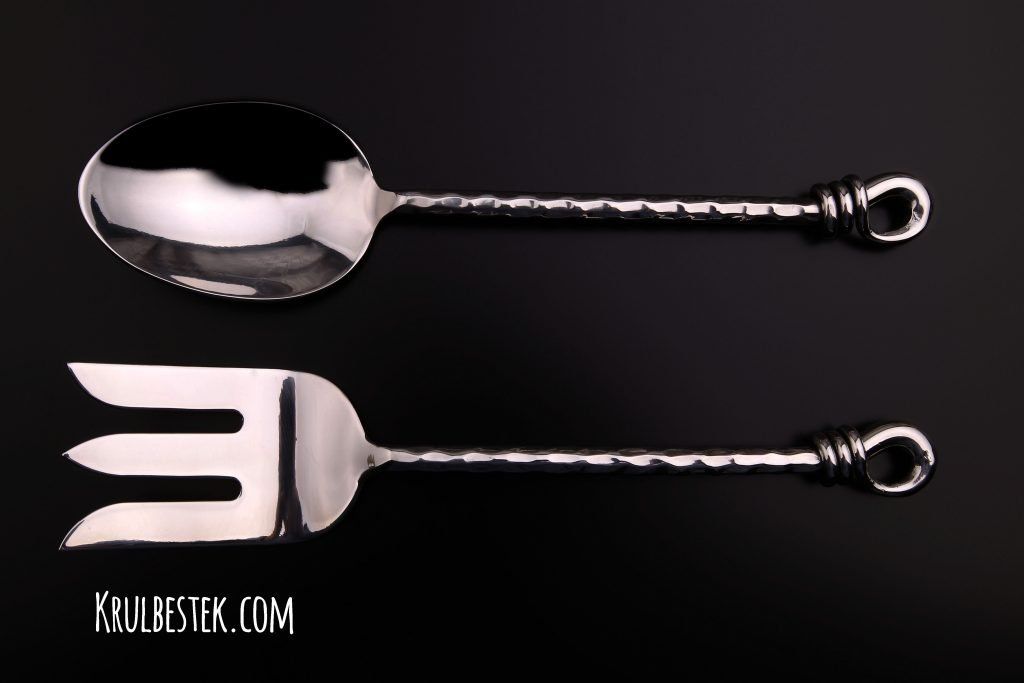 Van de serveerset zijn de lepel en vork beide 28 cm lang.